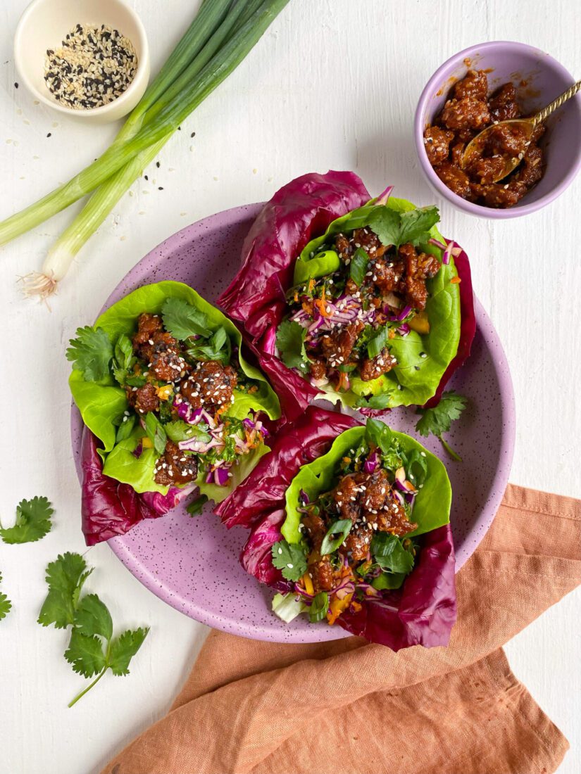Tout d'abord, lavez et préparez vos coupes de laitue et tapotez les feuilles avec une serviette en papier pour enlever tout excès d'eau. Mettez-les de côté.